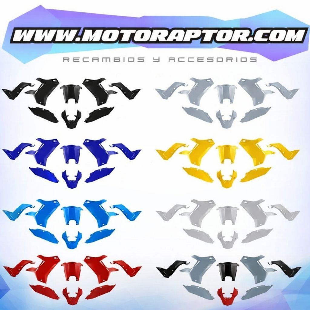 Está compuesto por dos tapas de radiador, cubierta para el depósito de gasolina, dos tapas laterales centrales, dos tapas laterales y tapa de guardabarros trasero.